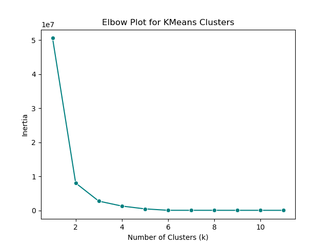 Using an elbow plot, I was able to determine that the ideal number of clusters was 6, matching the number of dominant land cover types. The elbow plot shows that inertia greatly drops after just 2 clusters, and seems to completely flatten after 6. Given the number of land cover types, 6 is shown to be an excellent choice for the number of clusters.